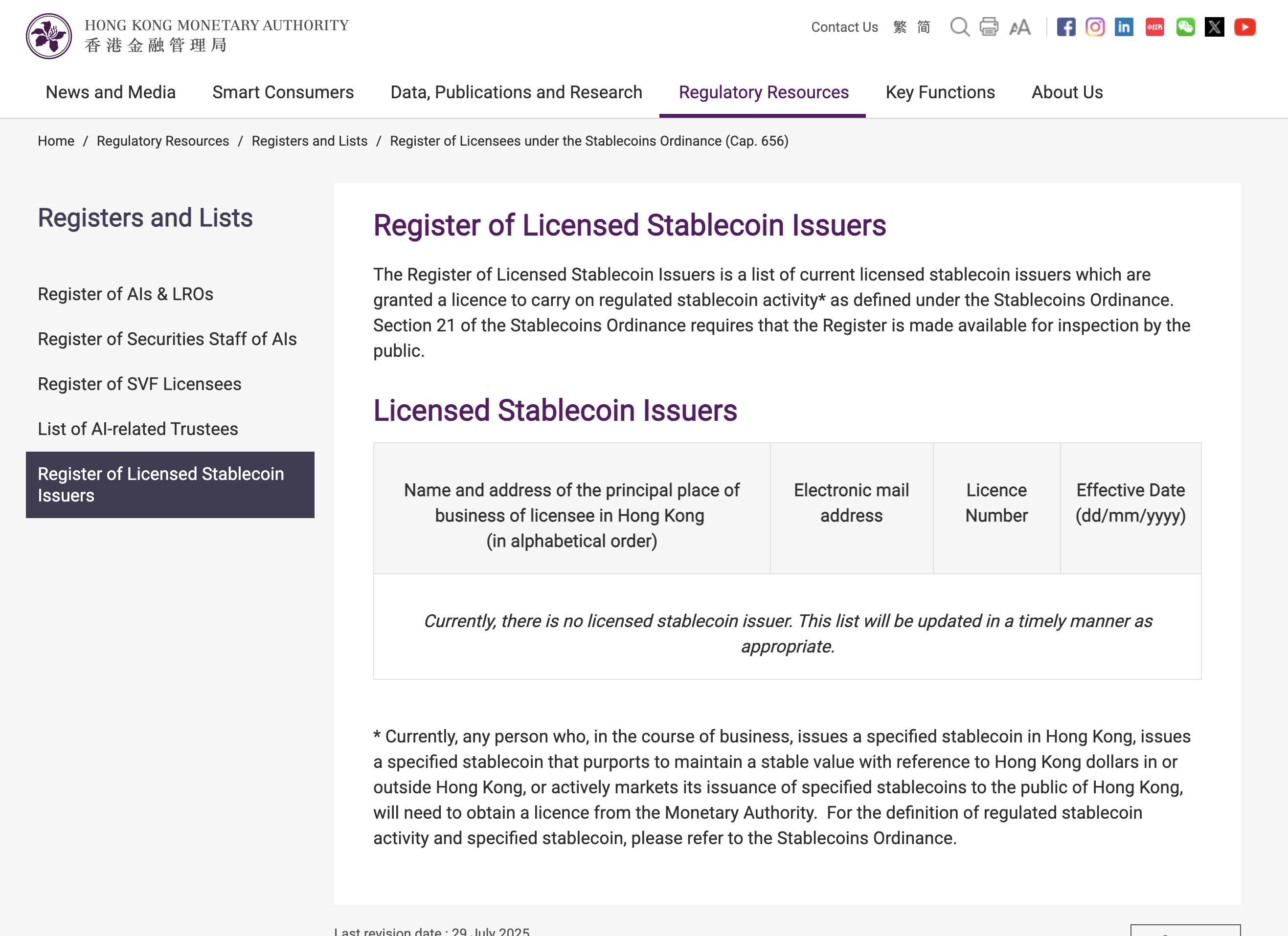 The HKMA’s public register still showed no licensed stablecoin issuers at the time of writing.